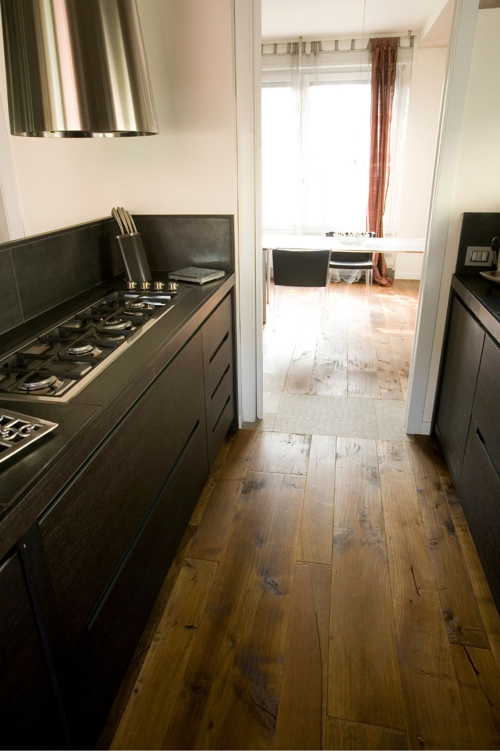 L’abitazione si trova ad Opera, Milano. Il Rovere Antico è una scelta classica che non passa di moda, donando valore ed eleganza a tutta la casa. La piallatura a mano conferisce un’estetica unica e una piacevole sensazione camminando a piedi nudi.
