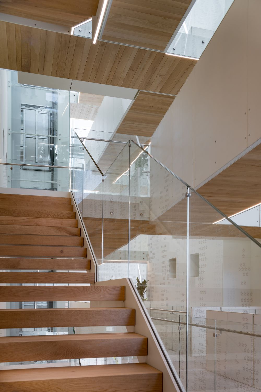 Per tutti i gradini delle scale comuni e per i controsoffitti è stata utilizzata legno di quercia massiccio di prima scelta.