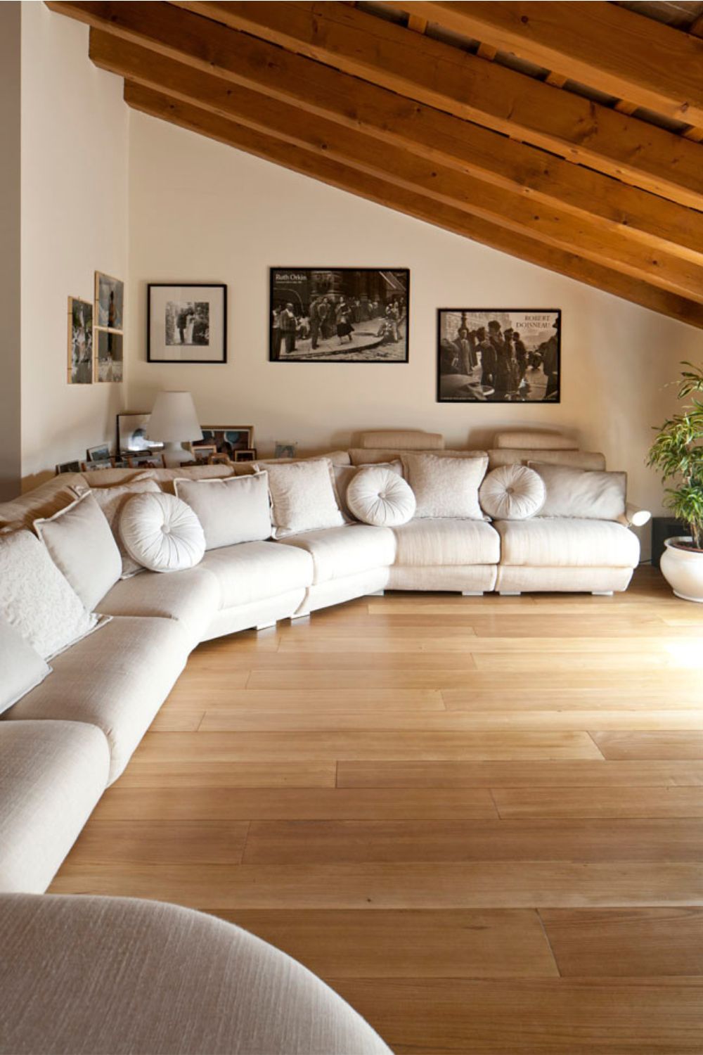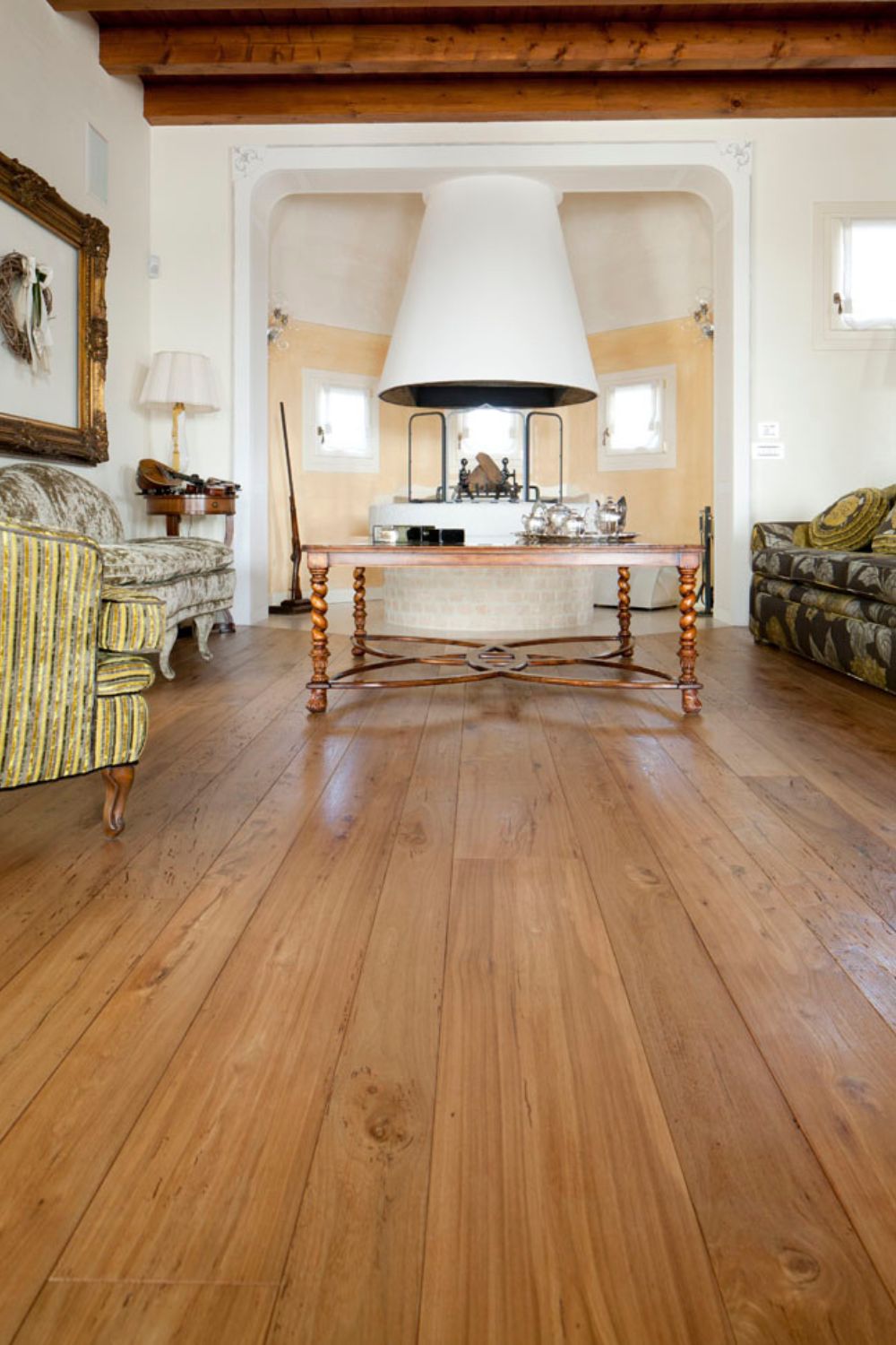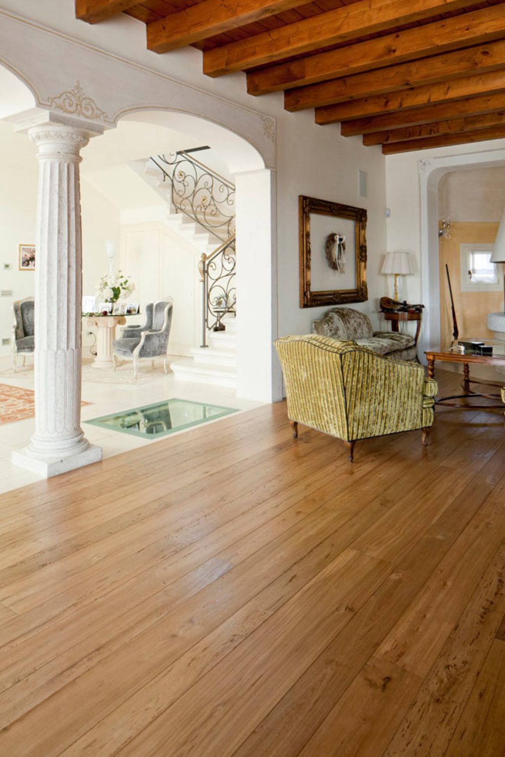 Nella prestigiosa zona padronale il cliente ha scelto di posare un olmo antico contraddistinto da un’intensa tarlatura.