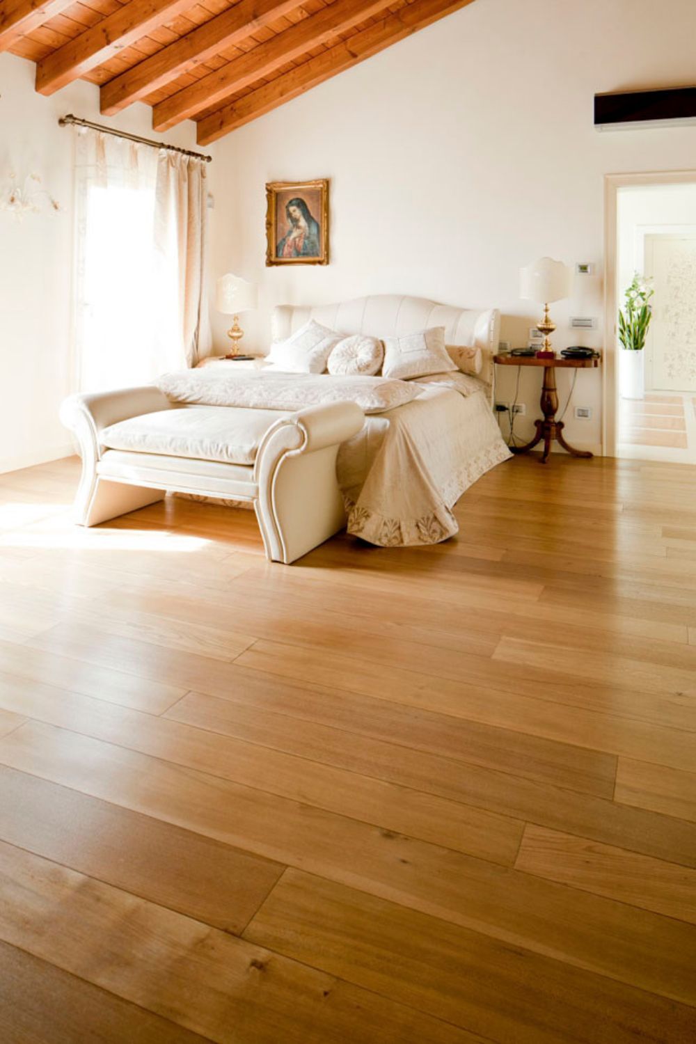 Nelle camere, bagni e zona fitness è stato scelto un olmo nuovo dall’aspetto bello e moderno.