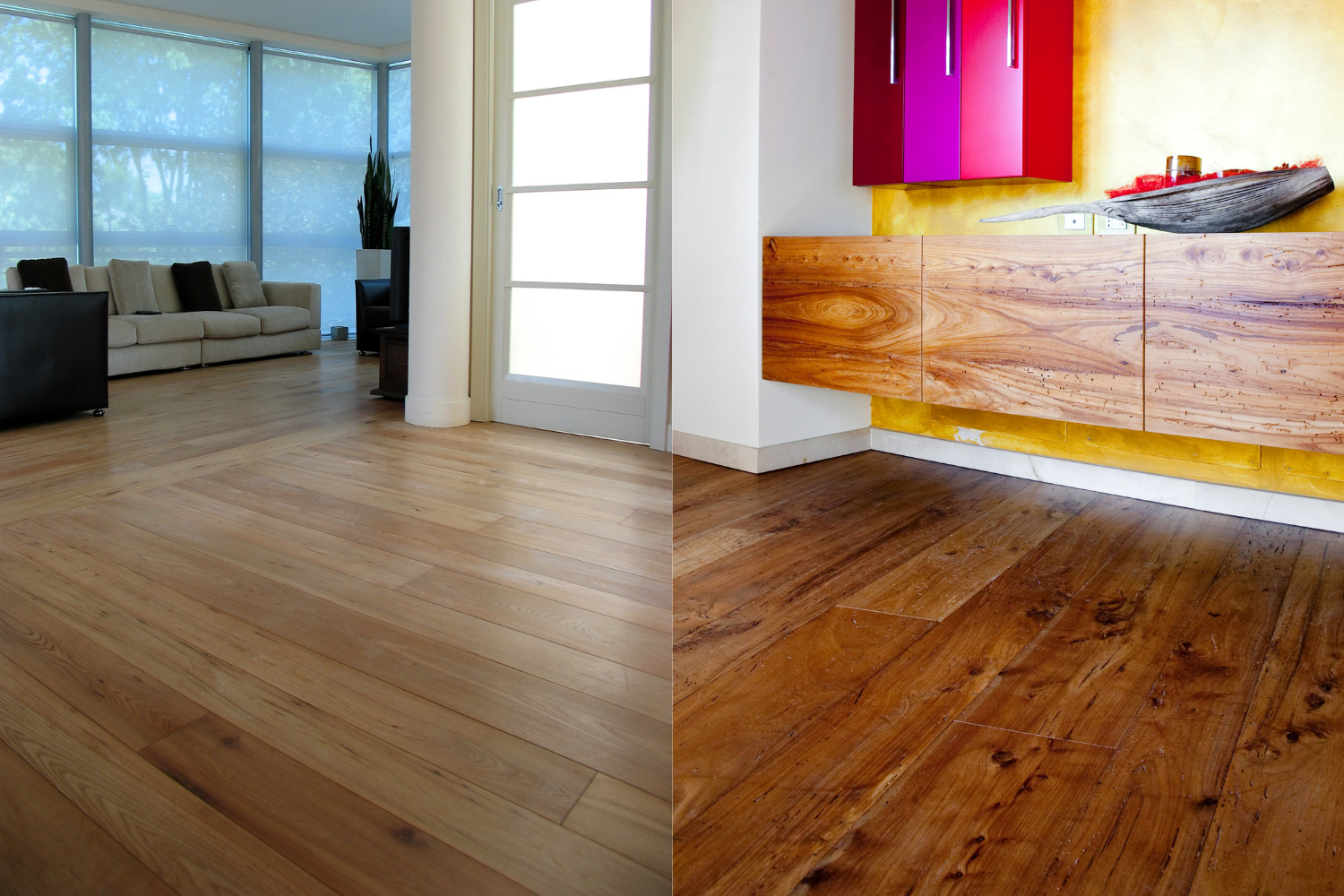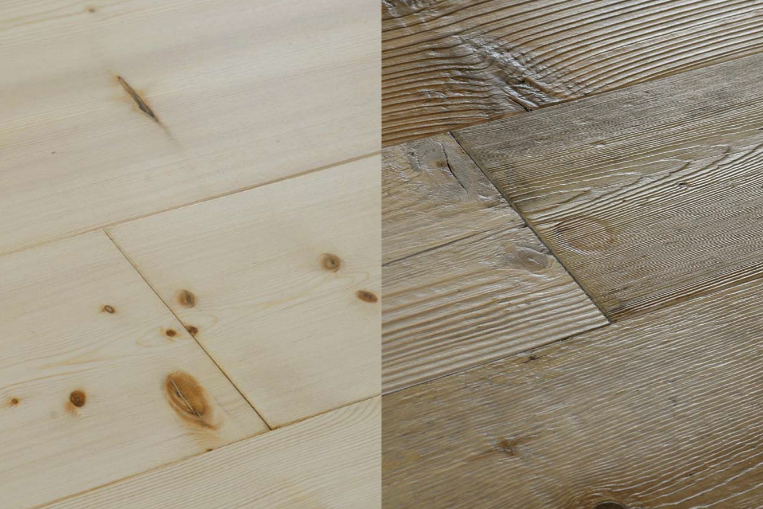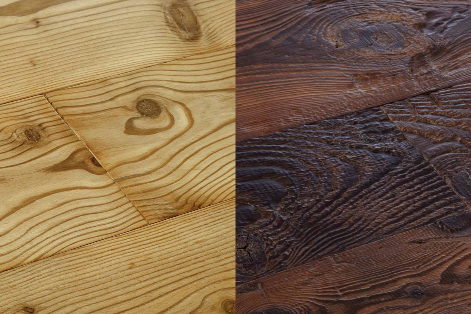 Il vero legno antico proviene da tavole e travi recuperate dal loro precedente impiego. Un materiale unico che è stato soggetto a decenni (se non secoli) di calpestio e agenti atmosferici. Si distingue facilmente dal legno anticato o da quello vecchio.
